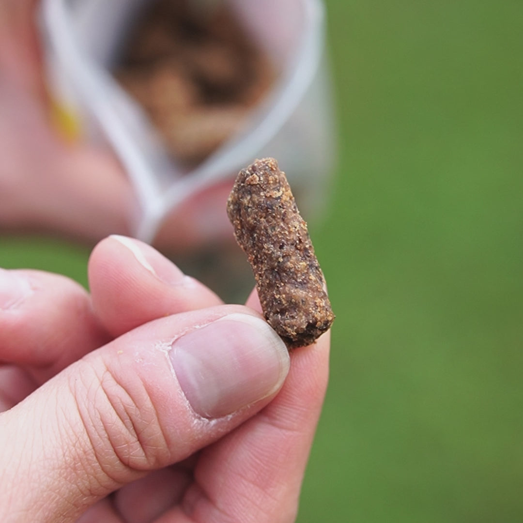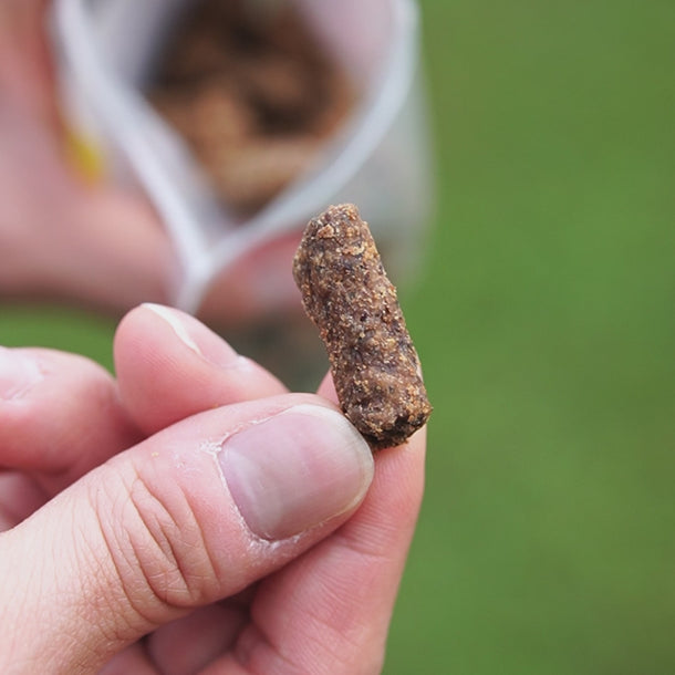 Our combination of high value red meat with cheese or green mussels makes this training treat an irresistible combination for dogs of all ages. The protein x cheese combination makes a fragrant, cheese-smelling treat that they can't say no to. Meanwhile the green mussel x protein combination creates a soft, crumbly texture they love.