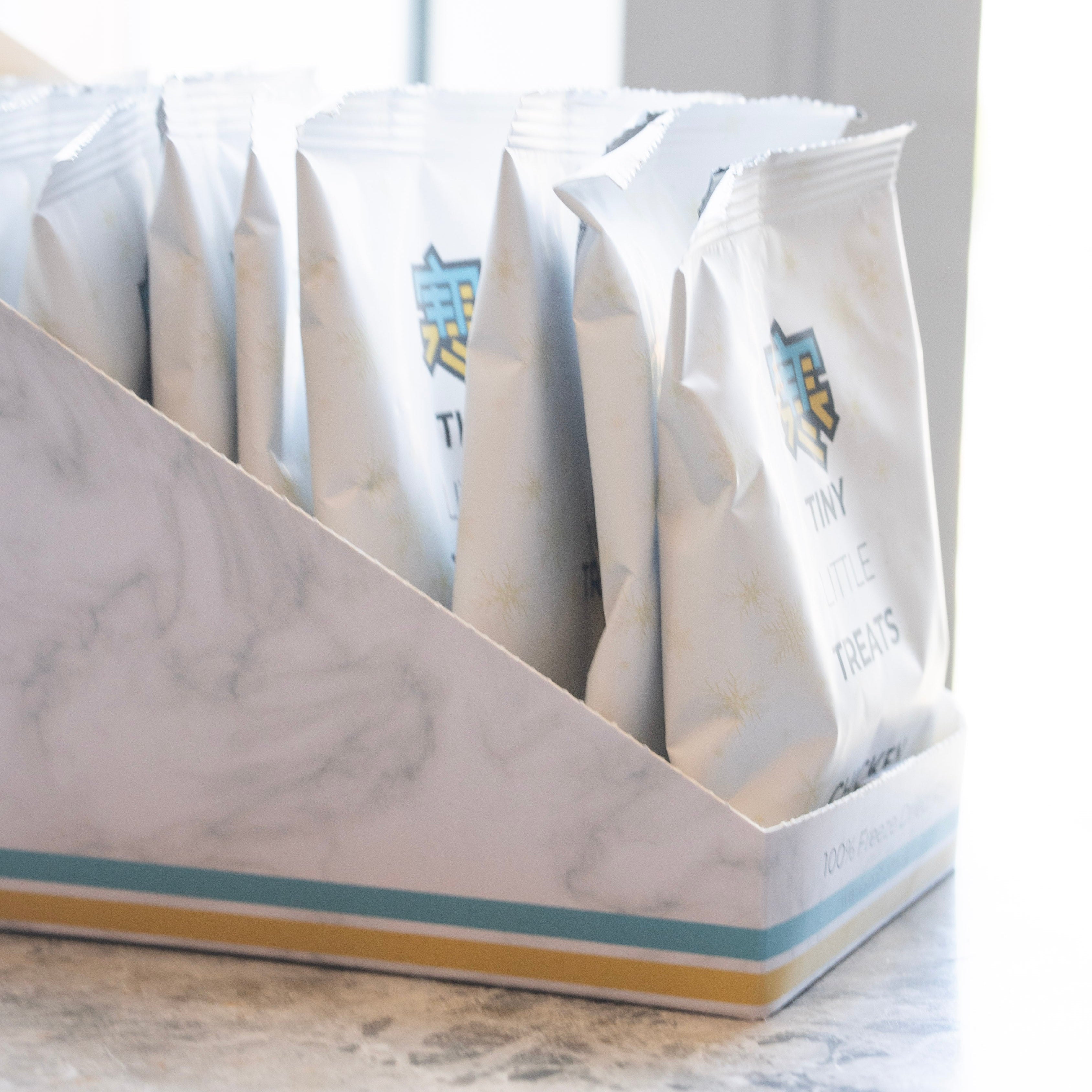If you're needing to calorie count for your furkid, or just have no time to cut treats, the Tiny Little Treats are packed in individual 10g packs to maintain freshness and reduce oxidization, so each time you take it out, it's a fresh new pack.