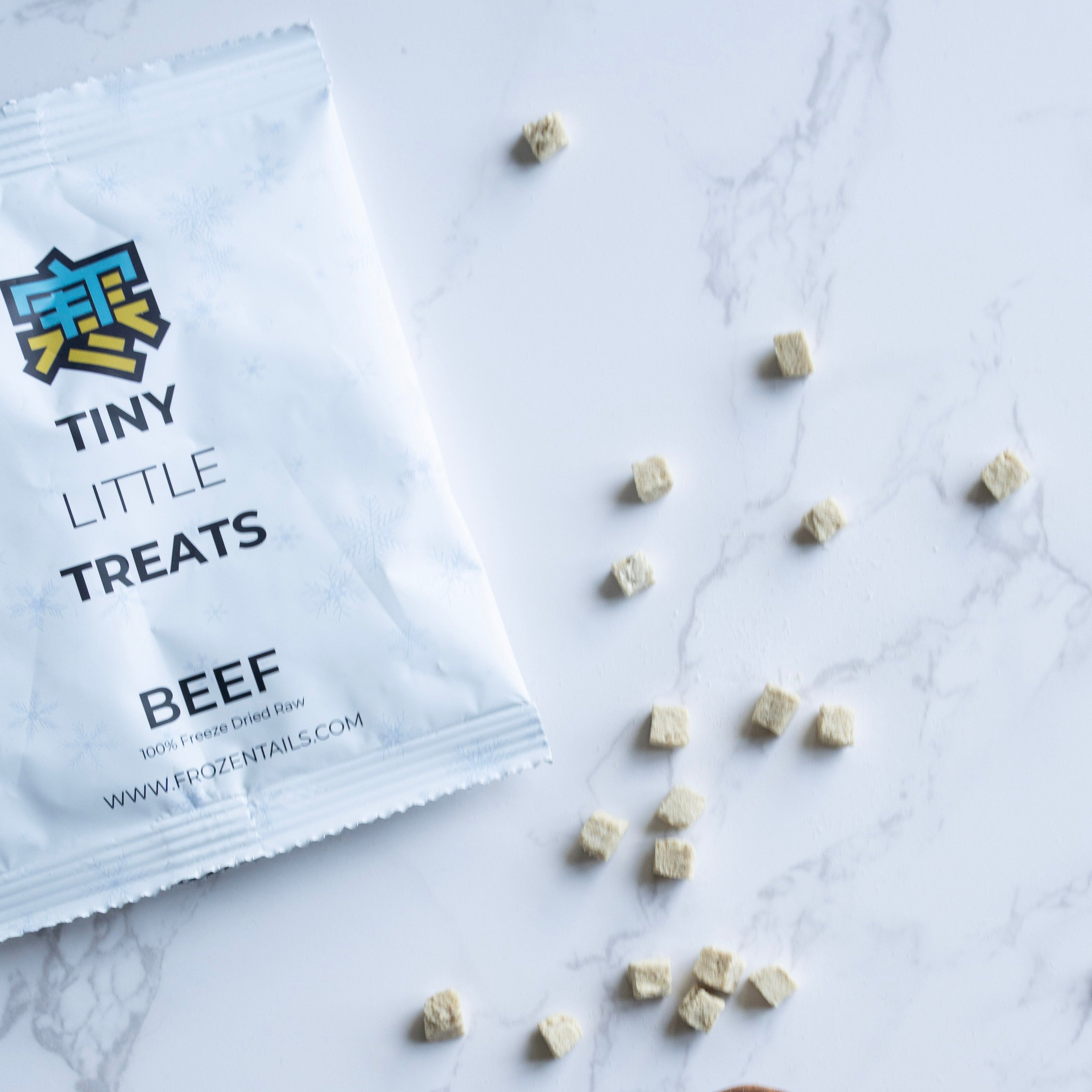 All made with single ingredient whole meat proteins, our Tiny Little Treats were made for dog owners needing training treats, or cat owners whose kitty mouths much prefer smaller treats.