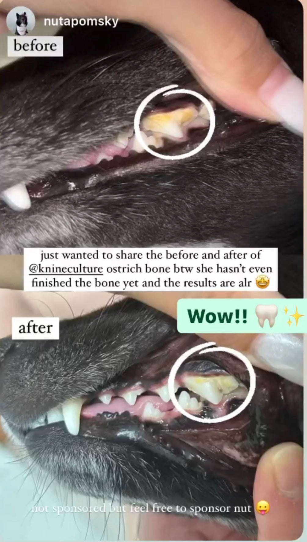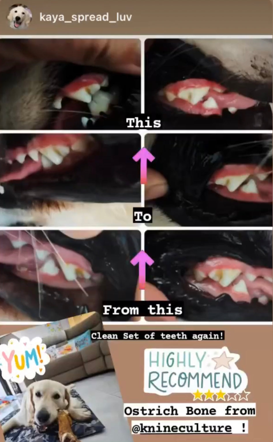 Premium Giant Ostrich Bone is naturally healthy and made of all natural ingredients for dogs. As a single protein, single ingredient chew, the ostrich bone's unique honeycomb interior makes it safe from splinters, while also helping to scrape off the plaque and tartar from the molars at the back of the teeth.