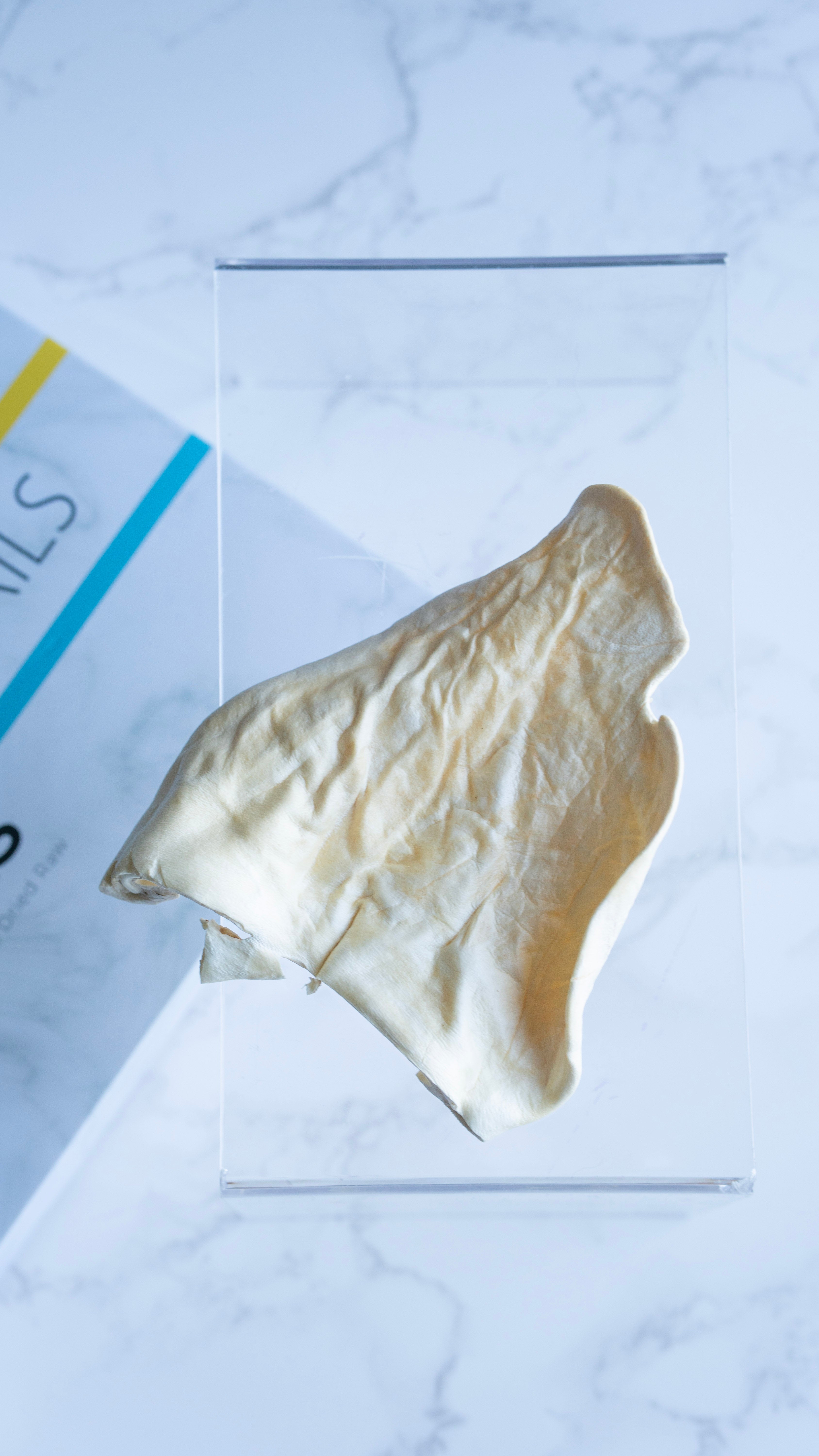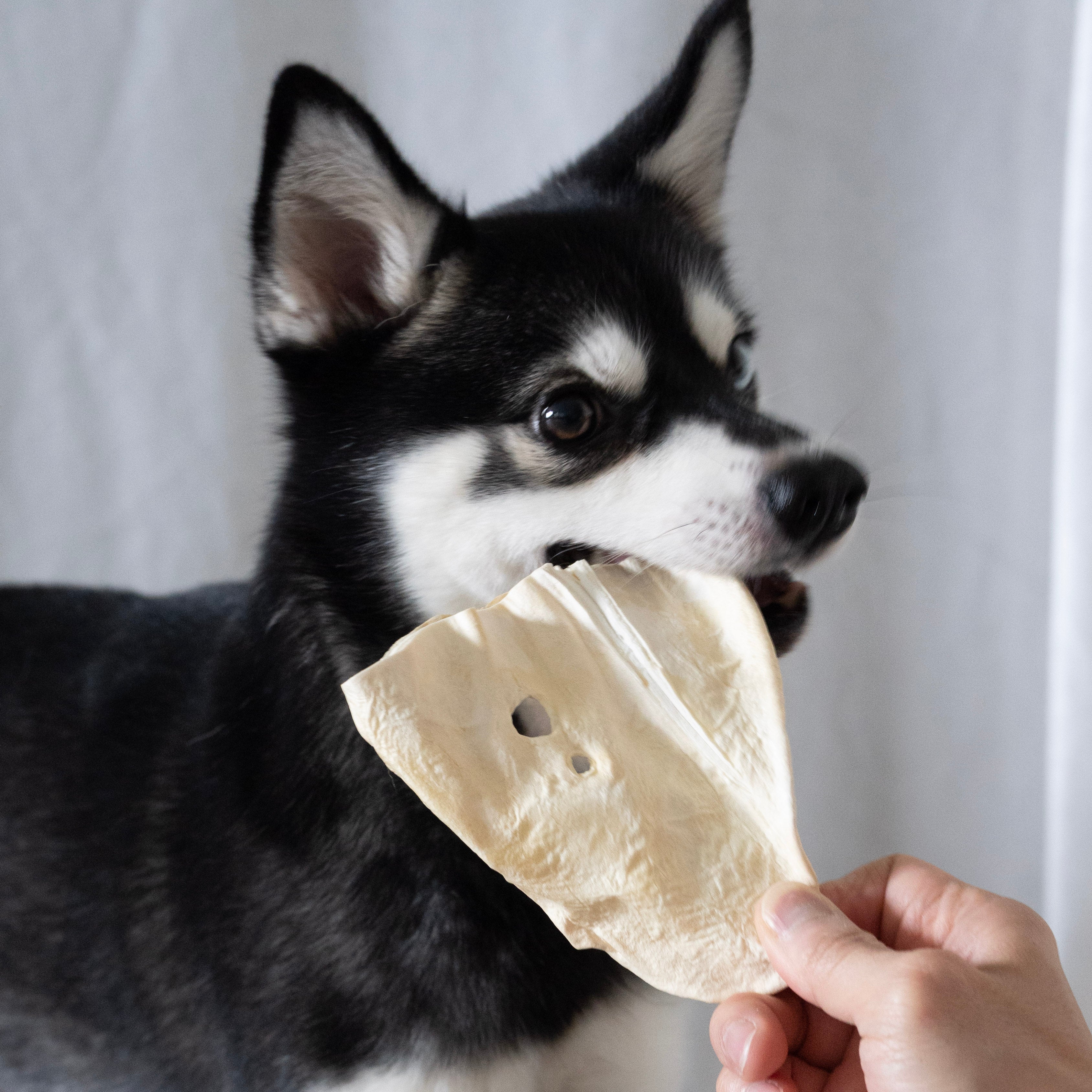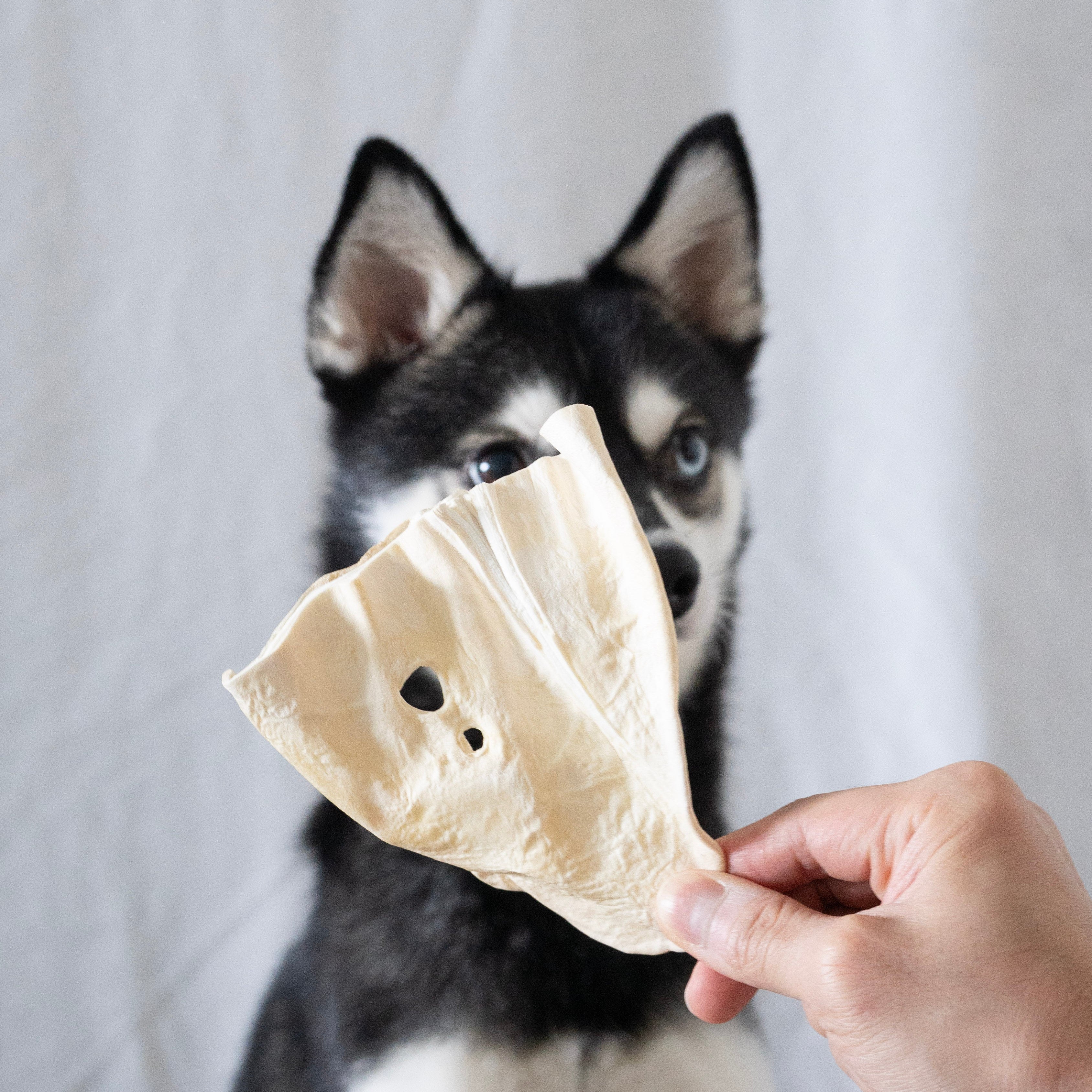 Single ingredient cow's ear, this is a freeze dried chew that is splinter free due to the cow's ear being primarily made of cartilage. Unlike its dehydrated counterpart, freeze dried cow's ear become chewier and gummier when chewed on, making it a good introductory chew for puppies who are teething, or hard chewers who run the risk of injuring themselves on sharper dehydrated chews.