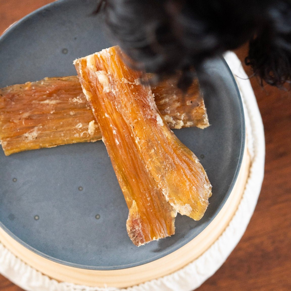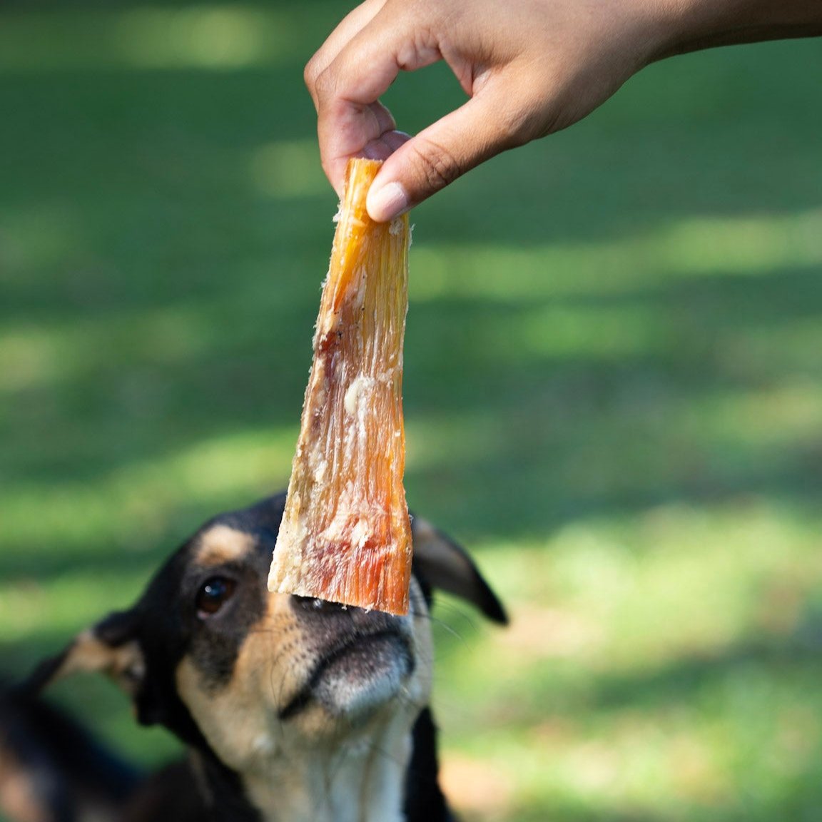 Beef Paddywack is a tough, fibrous treat made from the neck tendon of cattle. Known for its durability and nutritional benefits, it's a favorite among dog owners who have tough chewers, as the neck tendon is particularly tougher compared to the leg tendon more commonly found in the market. The tendon is rich in collagen for joint health, as well as a long lasting chew.