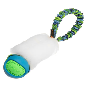There's a reason this toy is so popular. Well, actually there are several reasons! First off, it's compact enough to fit in the palm of your hand or a small bag when folded – ideal for hiding away until a reward is earned. Next, there's the combination of real sheepskin and a Tug-E-Nuff designed rubber PowerBall: the fur is irresistibly enticing to most dogs, and the ball gives extra weight for easy throwing, while also offering an interesting and comfortable texture for your dog. Last but by no means least is the handle, which is made from two strands of climbing-grade shock cord to reduce the risk of jarring the handler's shoulder or the dog's neck while playing tug.