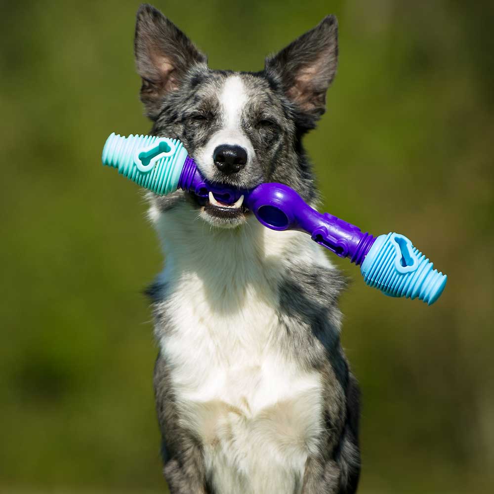 - The grooves on the side of the toy have been designed to rub between dogs teeth and the chewing action helps promote oral hygiene.